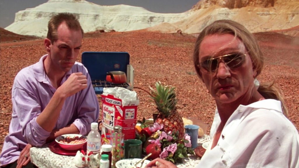 This brash, liberating and poignant road movie follows two drag queens and a transexual woman as they travel in a silver bus – ‘Priscilla’ – from Sydney to a gig in Alice Springs. ‘Les Girls’ are Bernadette, an ageing transsexual (Stamp), sharp-tongued Felicia (Pearce) and sensitive-flower Mitzi (Weaver), and this celebration of camp takes them where no lip-synching divas have ever been before. Unlike the bus, the film never gets bogged down, driven forward inexorably by naff disco tunes and crackling dialogue… Excellent, anchoring performances – it’s hard not to be swept along. – Timeout